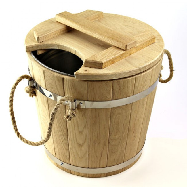 Запарник для віника з металевою неіржавкою вставкою 15 л дубзапарники для віників — це автентичні бондарні вироби, які здатні надати лазні та сауні особливого колориту. Крім того, практичне застосування робить їх незамінним атрибутом для лазневих процедур. Напевно, не знайти способу краще, ніж лазня, який так само гармонійно поєднував би відпочинок із задоволенням і користю для здоров'я. Досвідчені шанувальники лазні підтвердять, що для максимального ефекту в бані знадобиться віник, а з ним і запарник для віників.Проста та продумана конструкція — для якісного запарювання Щоби віник вийшов хлюстким, важливо якісне запарювання. Завдяки ергономічній конструкції, запарник для віників із дуба з металевою вставкою здатний підготувати лазневі віники до правильної парки та максимально розкрити всі їхні корисні властивості. Особливість запарника для віників із металевою вставкою — наявність оцинкованого відра всередині, що дає змогу спростити догляд і зберігання, а також продовжити термін експлуатації бондарного виробу. Запарник для лазні з кришкою дає змогу довше зберегти високу температуру всередині ємності, у такий спосіб виконуючи завдання швидше та якісніше. Виїмка в кришці забезпечує найкраще розміщення віників у запарнику. Відро запарник використовується й безпосередньо в процесі паріння. Якщо в парилці лазневий віник підсох, його треба змочити в запарнику теплою водою.Прімущество дуба як матеріал для виробів у бю високоякісна дубова деревина як матеріал для запарника чудово витримує вологий мікроклімат бани. Натуральний дуб міцний і не схильний до гниття, тому виріб із дуба слугуватиме довго.Характеристики запарника: Об'єм — 15 літрів Форма — кругла Наявність вставки — да Матеріал вставки — неіржавке відро 15 літрів Наявність кришки — да Порода деревини — дуб Матеріал обруч — неіржавка сталь з'єднання клепки — через мікрошип Матеріал заклепок — неіржавка сталь Фарбувати лляною олією — за договореністю Кількість отворів у кришці — одне (під один віник) Гарантія від виробника — 1 рік. Розміри (орієнтовні): Діаметр верх — 34 см. Діаметр низ — 27 см. Висота (загальна) — 37 см.
